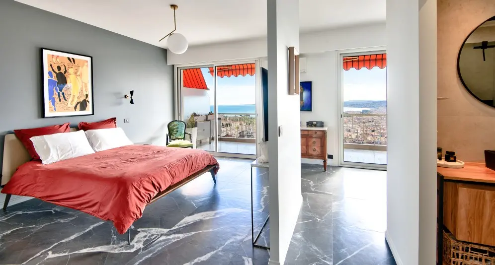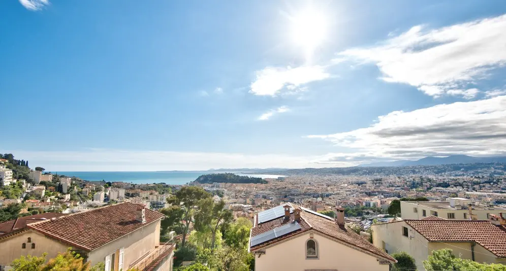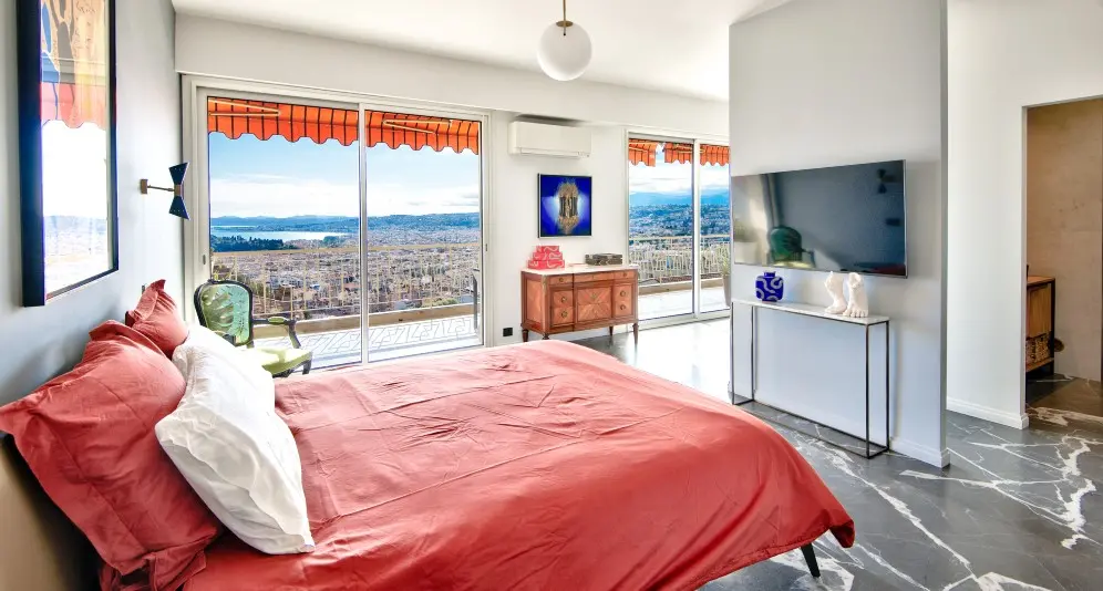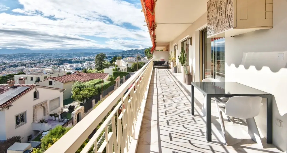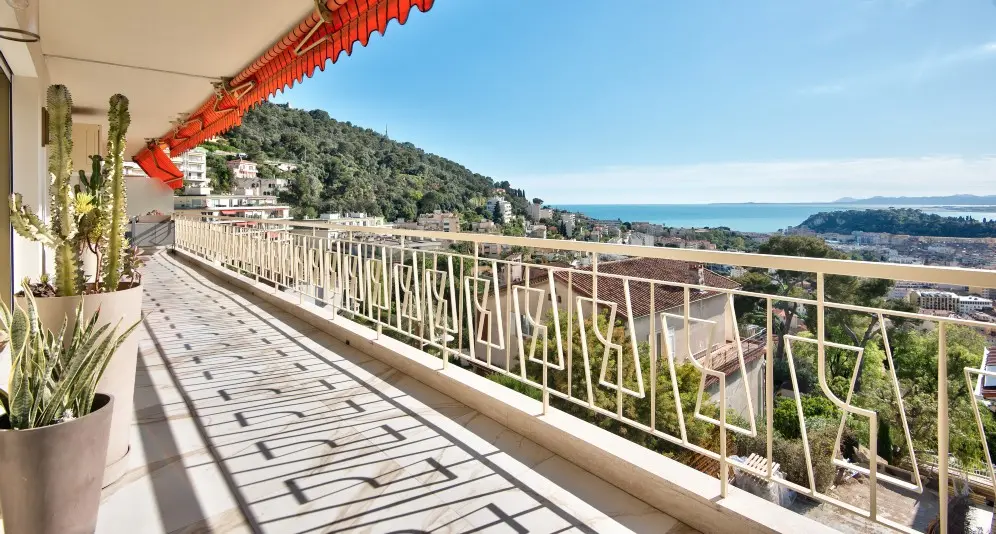 Myytävänä avara asunto Col-de-Villefranchella, Nizzan ja Villefranche-sur-Merin välissä. Asunto on erinomaisessa kunnossa ja siitä aukeaa panoraamanäkymät kaupungin yli kauas merelle.