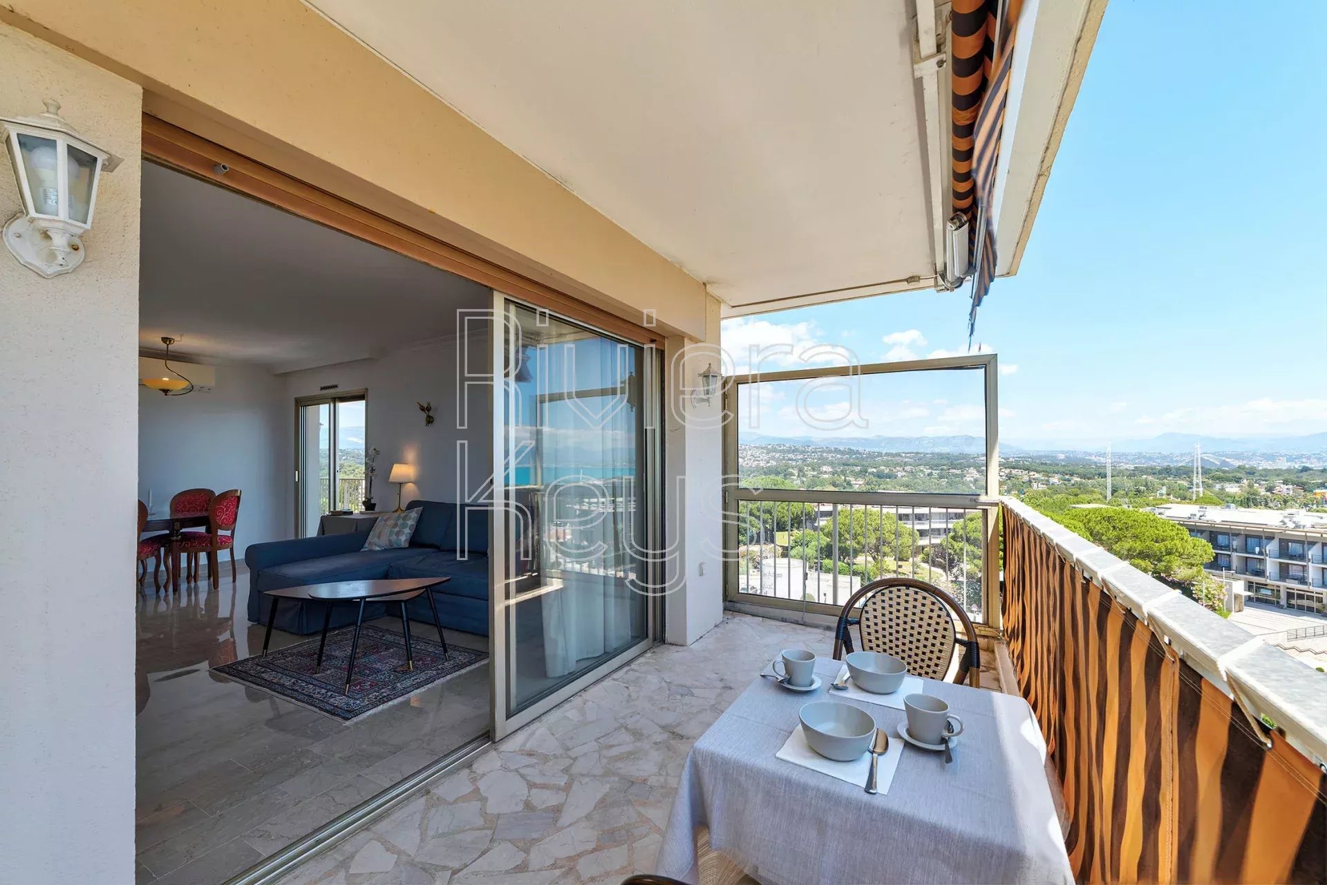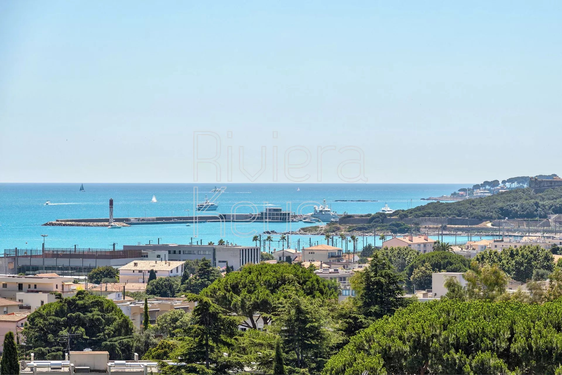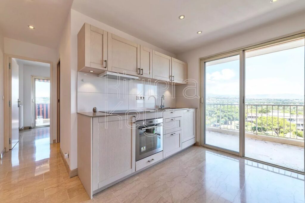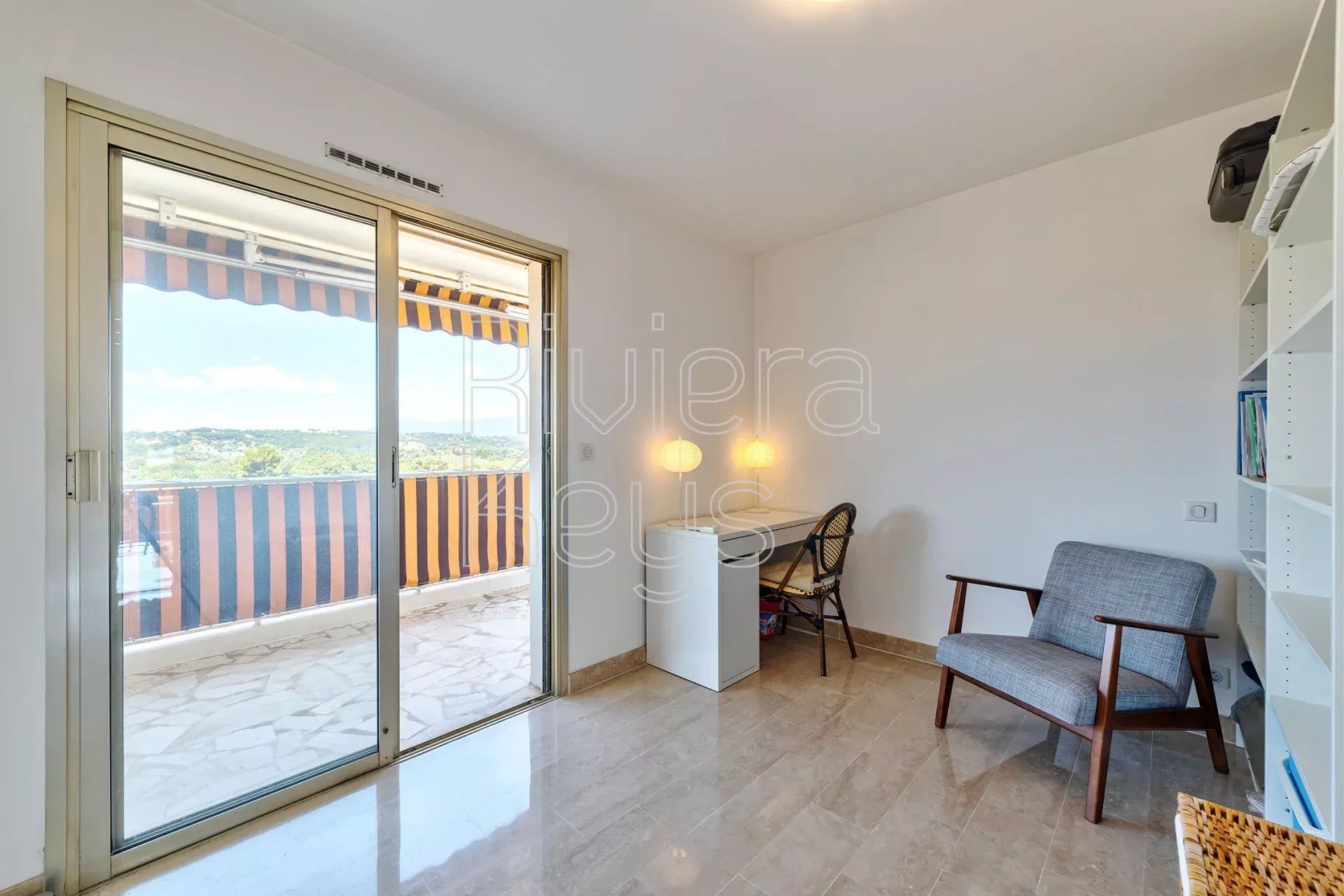 Myytävänä remontoitu läpitalon kolmio Antibesin Bréguières’n asuinalueella. Asunto sijaitsee kävelymatkan päässä palveluista sekä rannasta, ja sen terassilta aukeaa panoraamanäkymät merelle.