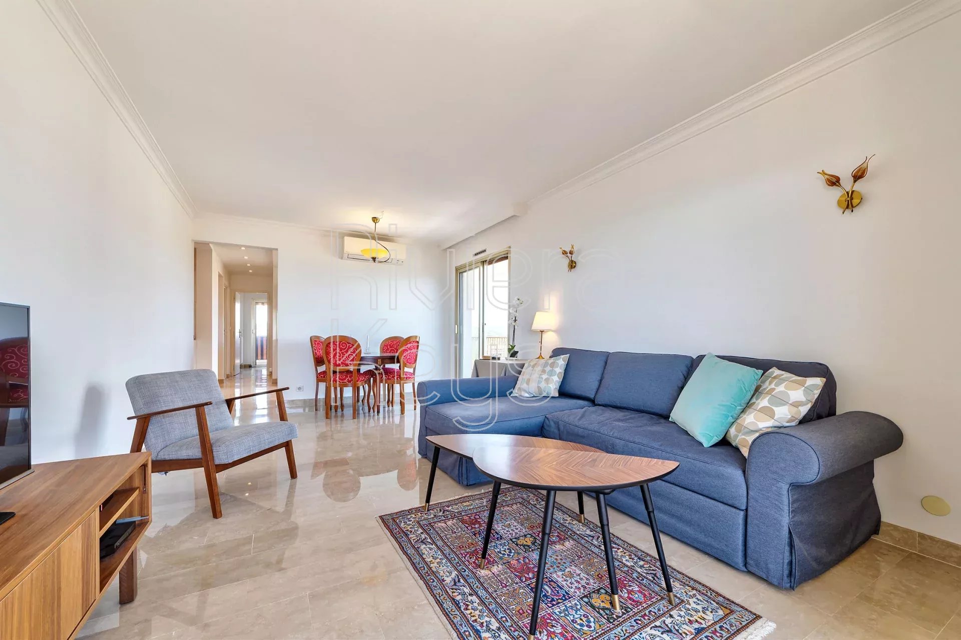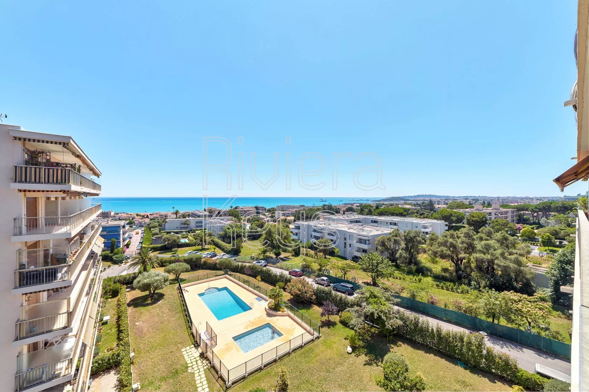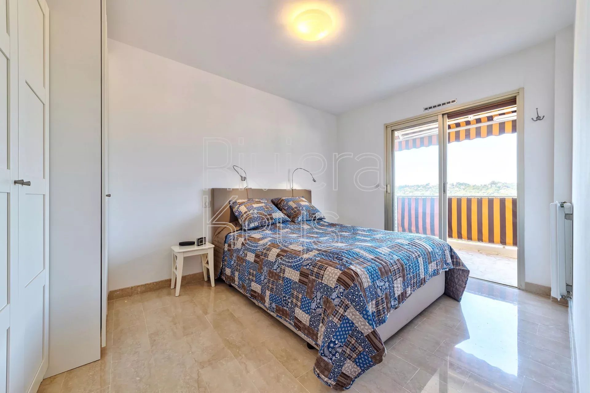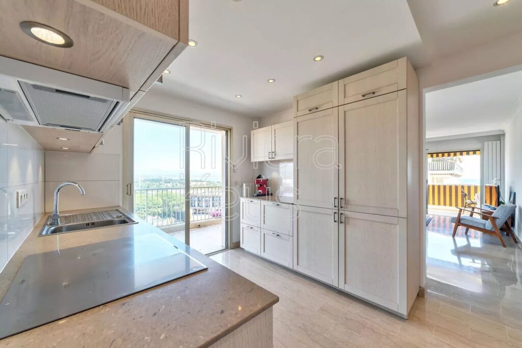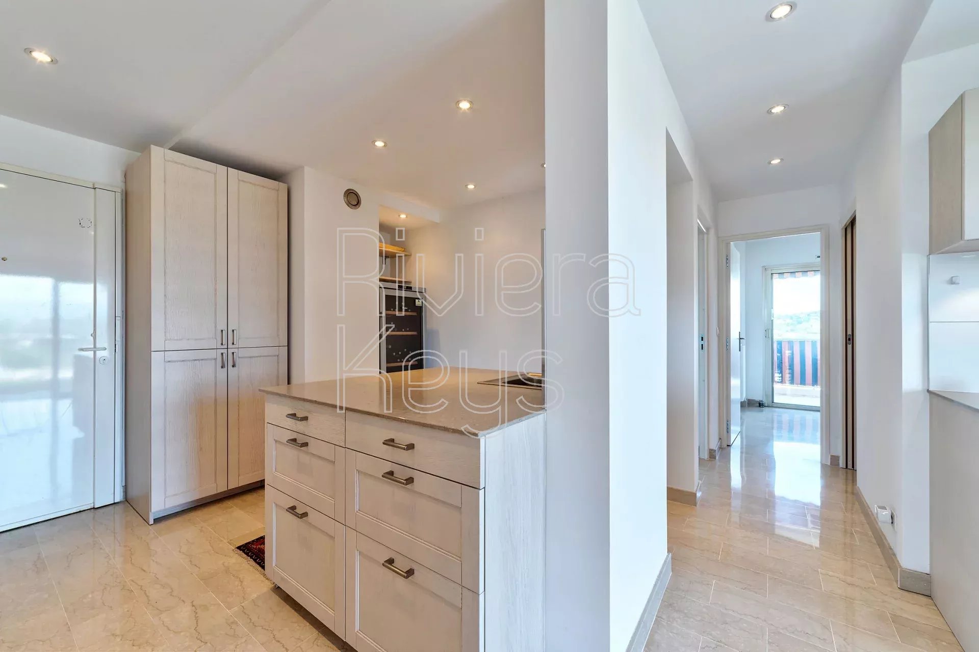 Myytävänä remontoitu läpitalon kolmio Antibesin Bréguières’n asuinalueella. Asunto sijaitsee kävelymatkan päässä palveluista sekä rannasta, ja sen terassilta aukeaa panoraamanäkymät merelle.