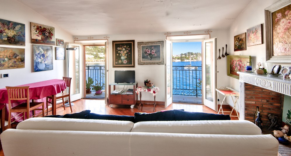 Myytävänä kaksio Villefranche-sur-Mer’n vanhan kaupungin rantaviivalla, Saint-Jean-Cap-Ferrat’a vastapäätä. Ylimmän kerroksen asunnosta on postikorttimaisemat merelle.
