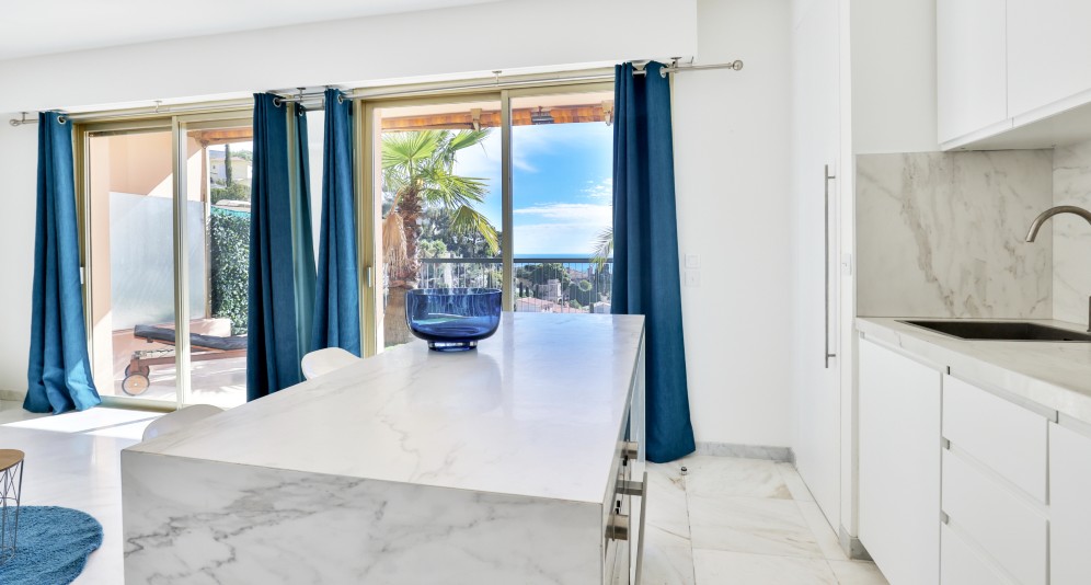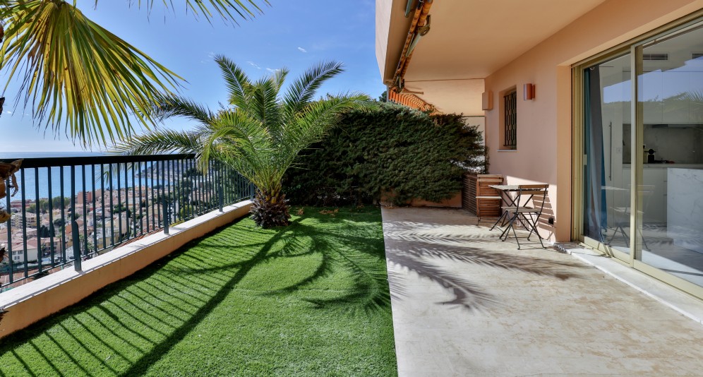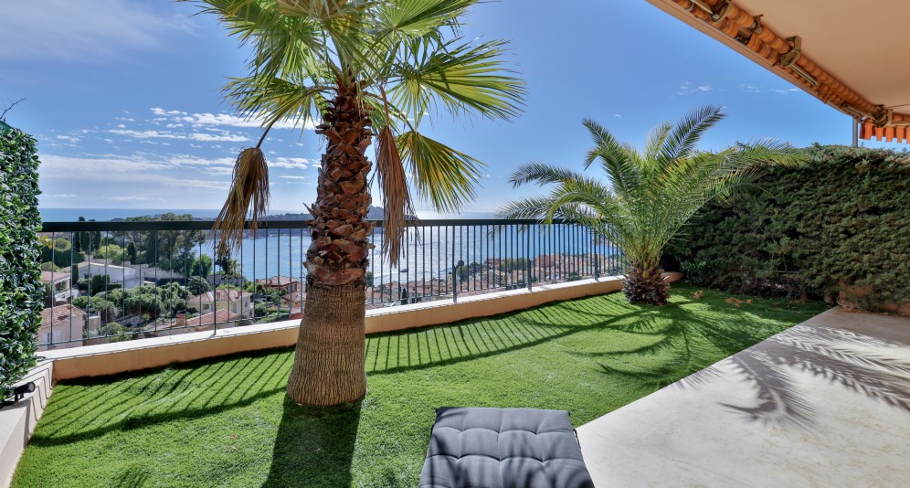 Myytävänä upea yksiö hulppealla terassilla Villefranche-sur-Mer’n rinteellä. Asunto sijaitsee korkeatasoisessa taloyhtiössä ja siitä on henkeäsalpaavat näkymät merelle ja Cap-Ferrat’n -niemelle.