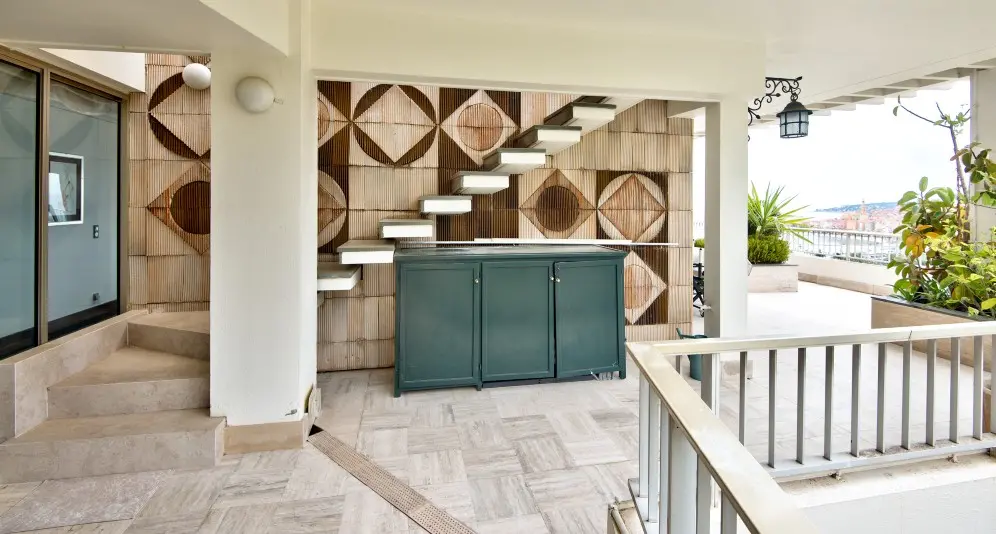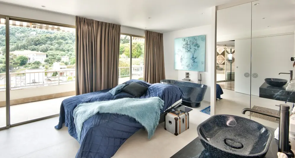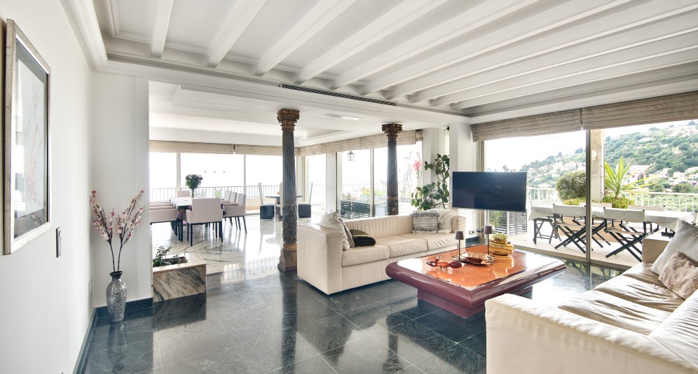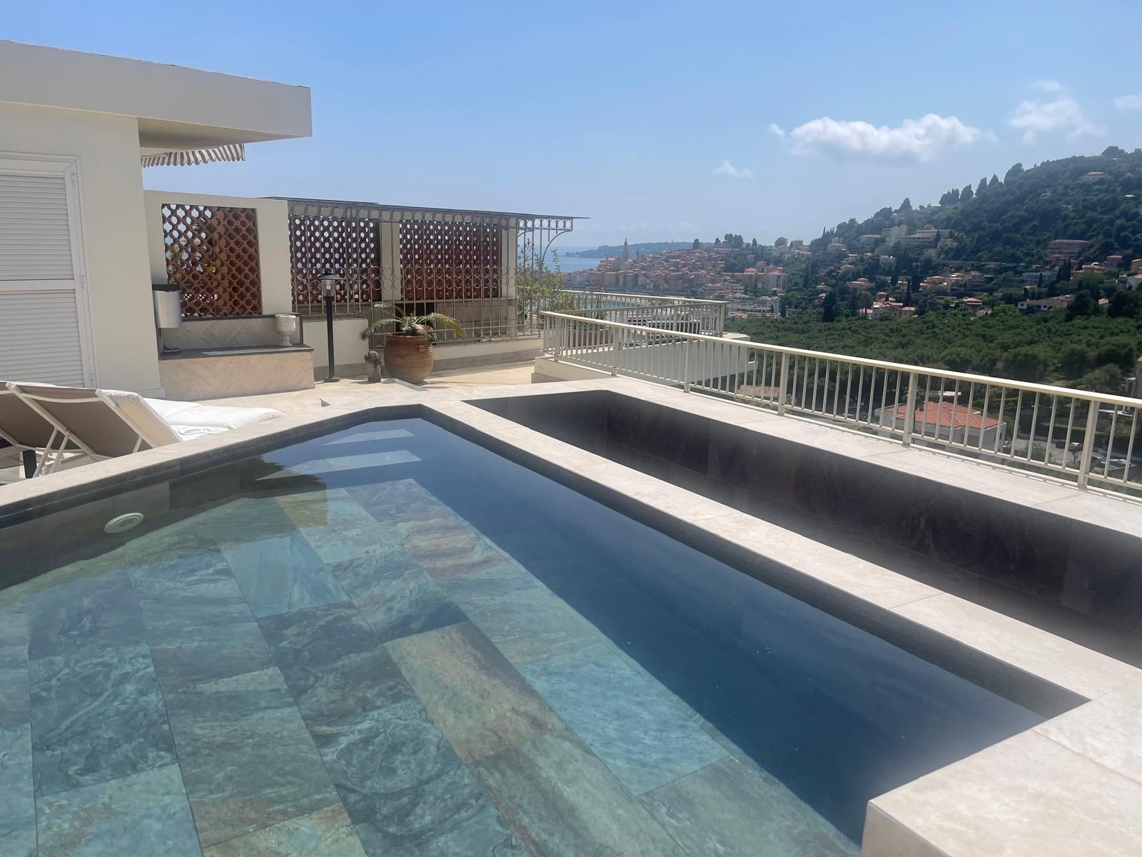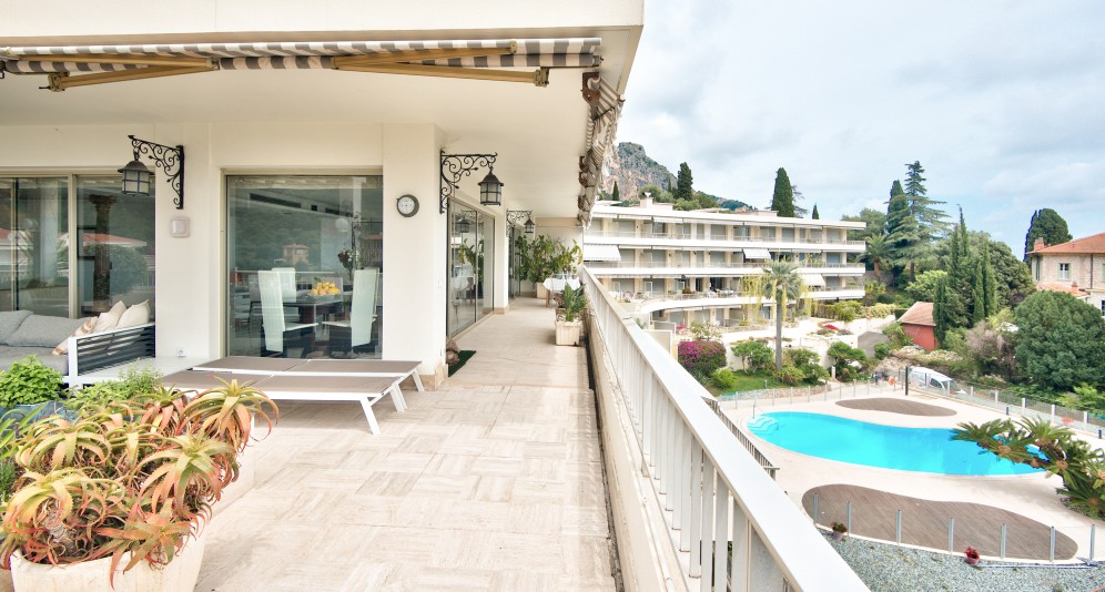 Myytävänä ylimmän kerroksen hulppea kattohuoneisto Mentonissa, arvostetun Garavanin rinteellä. Huoneisto sijaitsee erittäin korkeatasoisen taloyhtiön ylimmässä kerroksessa ja sen 365 m2 terassilta avautuu poikkeuksellisen kaunis maisema merelle ja Mentonin vanhaan kaupunkiin.