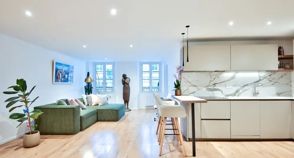 Myytävänä läpitalon asunto Nizzan keskustan kävelykadun varrella. Kolmio on täysin remontoitu ja sijaitsee aivan Place Massenan tuntumassa.