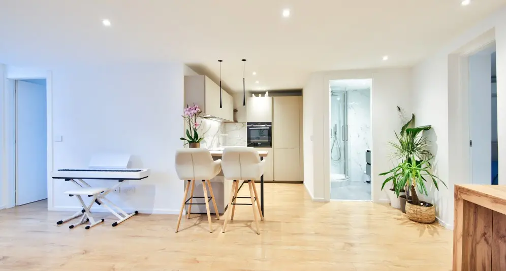 Asunnossa on tilava olohuone avokeittiöllä, kaksi makuuhuonetta, kaksi kylpyhuonetta, vaatehuone ja erillinen wc.