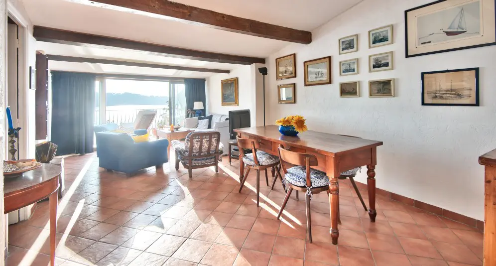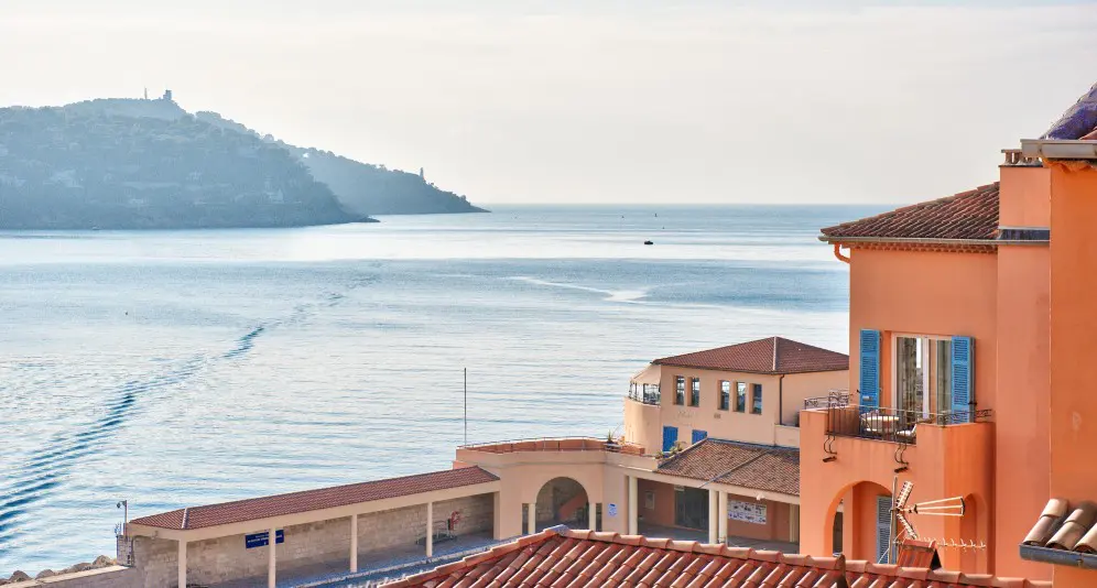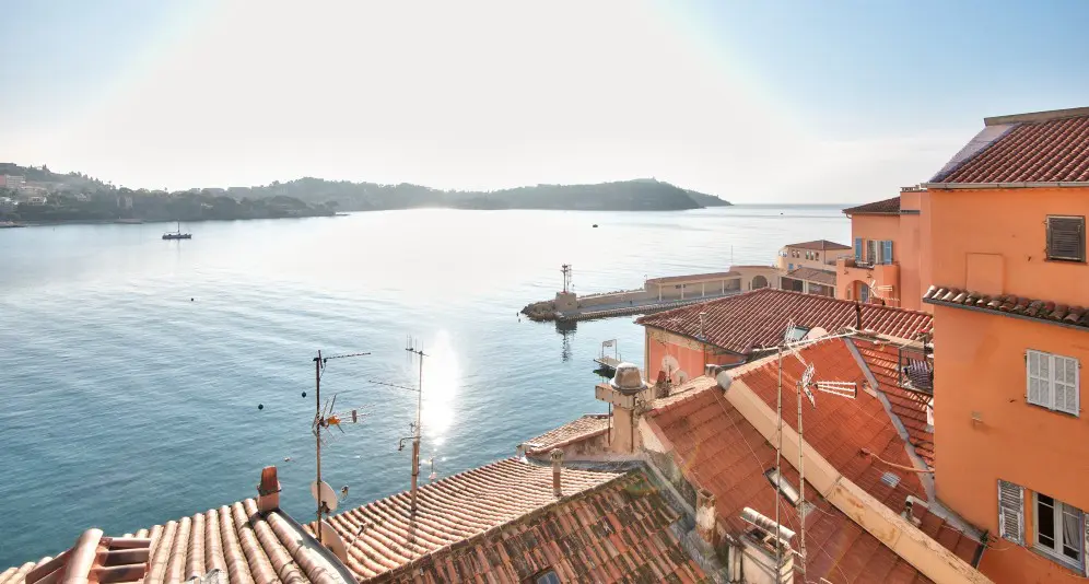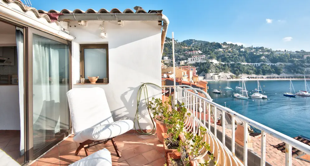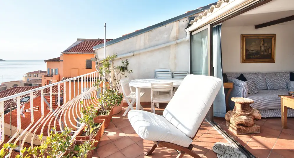 Myytävänä läpitalon asunto Villefranche-sur-Mer’n vanhassa kaupungissa. Asunto sijaitsee ylimmässä kerroksessa ja siinä on harvinainen terassi, josta postikorttimaisemat merelle.