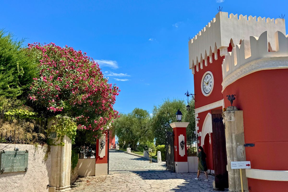 Château de Crémat kohoaa Nizzan kukkuloilla keskellä vehreää Belletin viinialuetta. Sen tunnistaa jo kaukaa: linnamaiset tornit, laajat terassit ja viiniköynnöksillä reunustetut muurit tekevät vaikutuksen heti portilta alkaen. Tämä ei ole mikä tahansa viinitila – Crémat on paikka, jossa historia, estetiikka ja paikallinen viinikulttuuri kohtaavat poikkeuksellisella tavalla.
