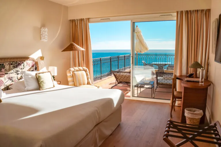 Hotellin 53 huonetta ja sviittiä on suunniteltu tarjoamaan maksimaalista mukavuutta ja yksityisyyttä. Kaikissa huoneissa on oma terassi tai parveke, ja useimmista avautuu upea merinäköala. Jokainen huone on yksilöllisesti sisustettu ja varustettu moderneilla mukavuuksilla, kuten ilmastoinnilla, minibaarilla ja laadukkailla vuodevaatteilla, mikä takaa miellyttävän yöpymiskokemuksen. Hotellin kattoterassilta avautuvat upeat panoraamanäkymät Nizzan kaupungin ylle.