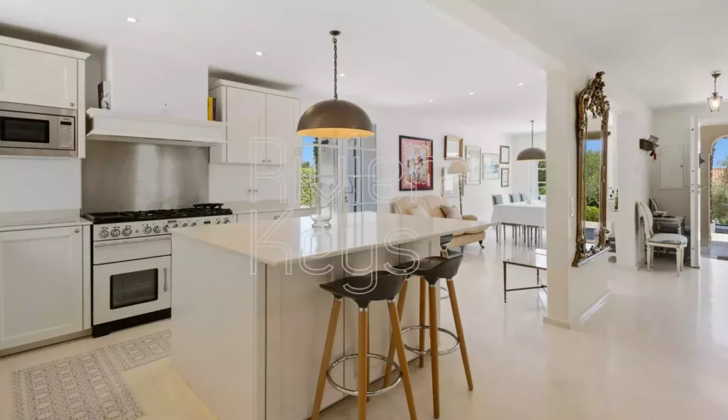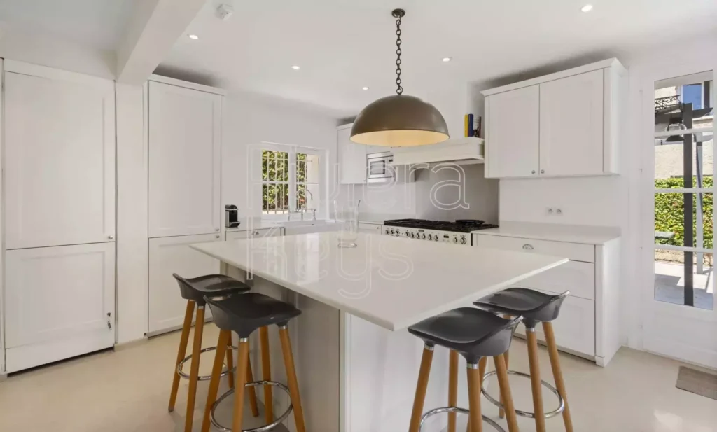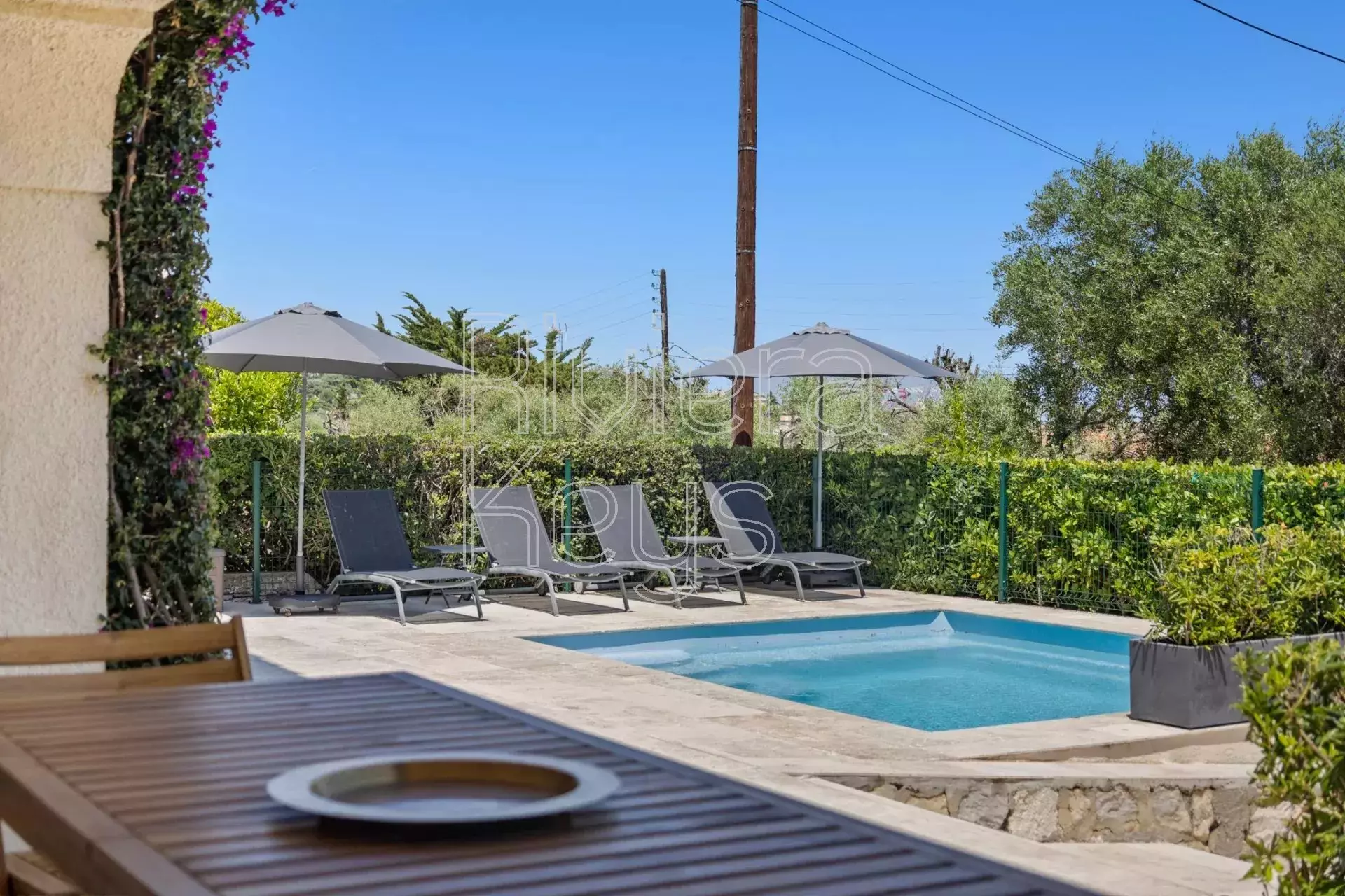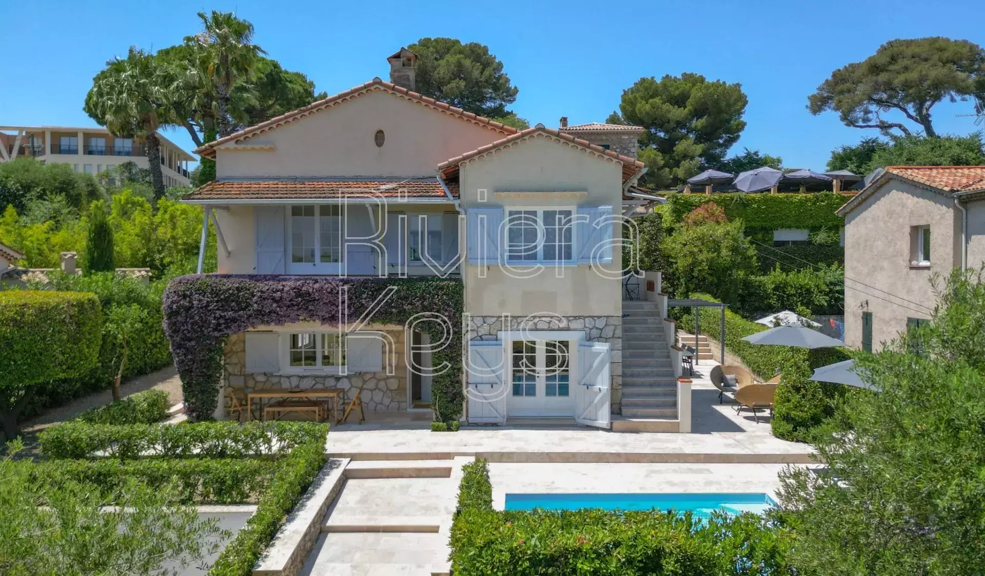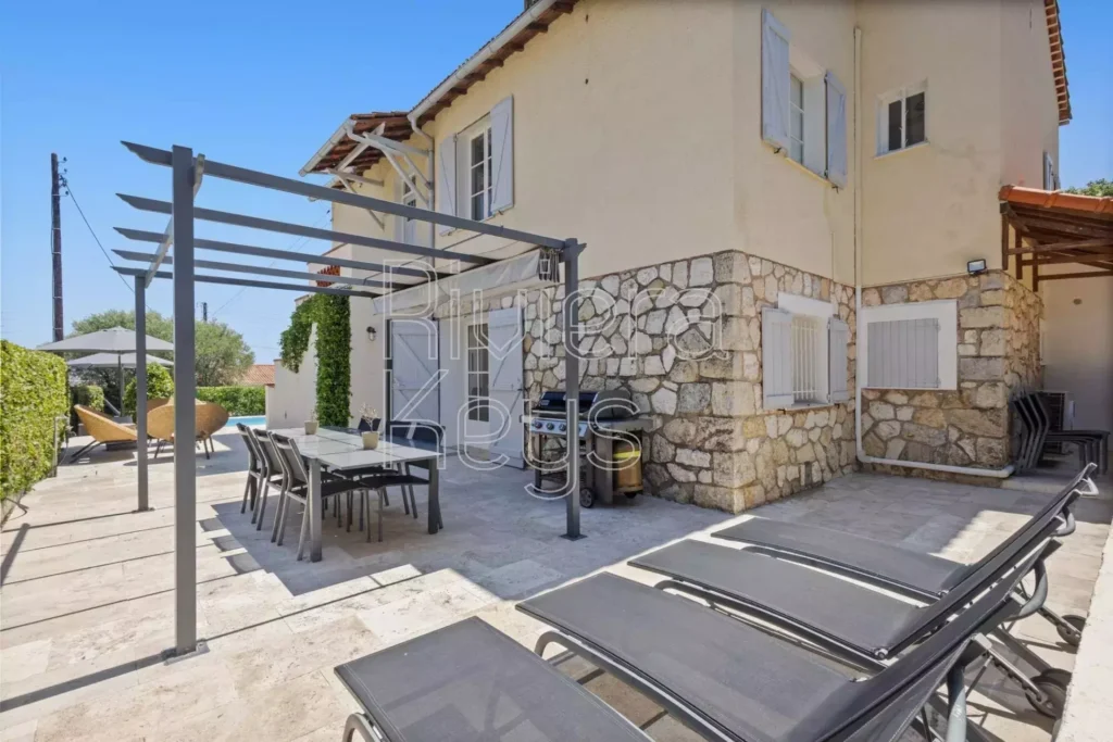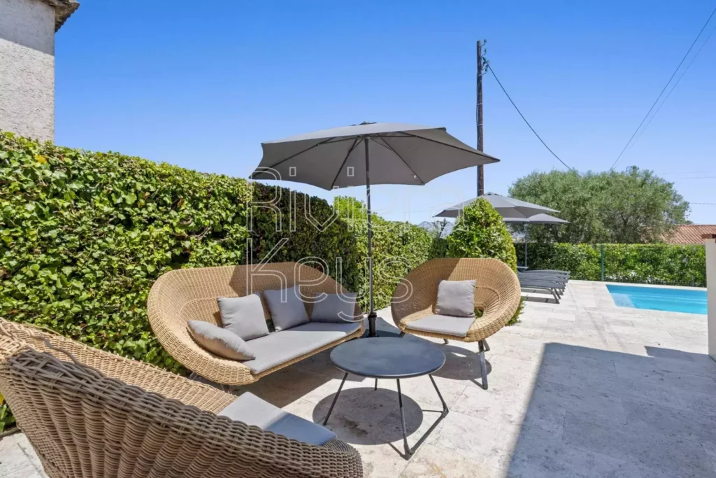 Myytävänä remontoitu talo Antibesin rauhallisella alueella. Huvila sijaitsee kävelymatkan päässä keskustan palveluista ja sen pihalla on iso uima-allas.